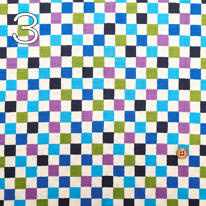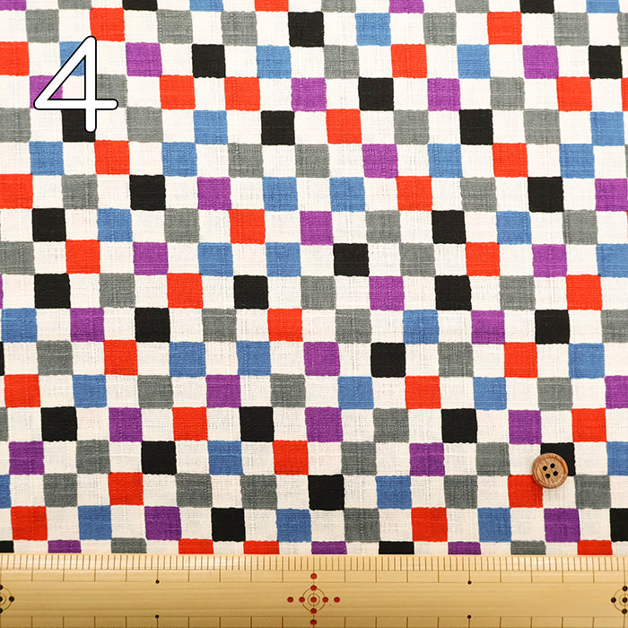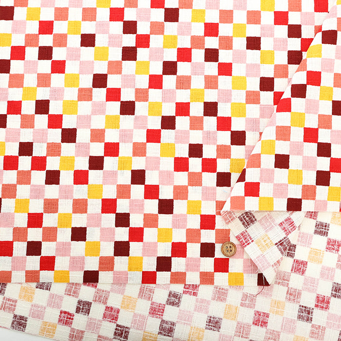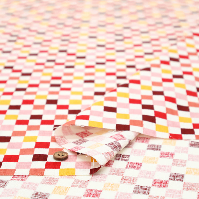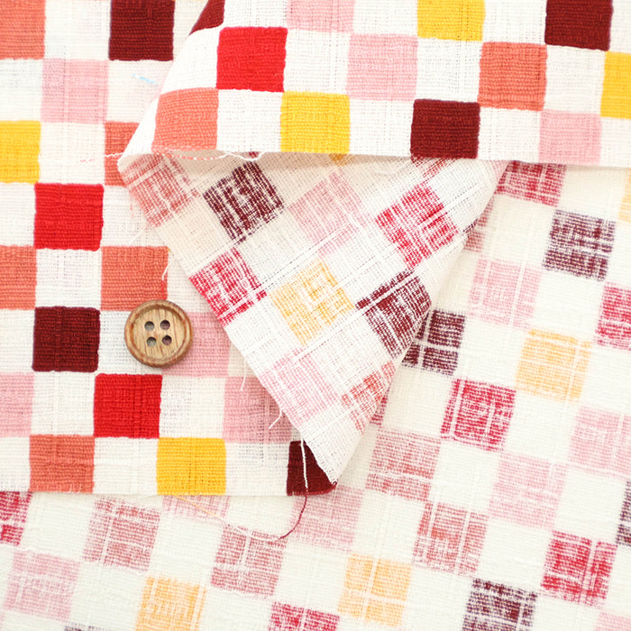 Cotton Tsumugi Shantung Print Fabric - Checkerboard