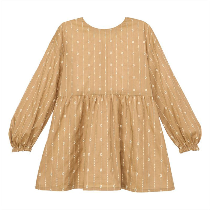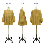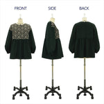 Sleeves are carefully patterned with gathered cuffs to create volume without being overly sweet, achieving a mature balance.