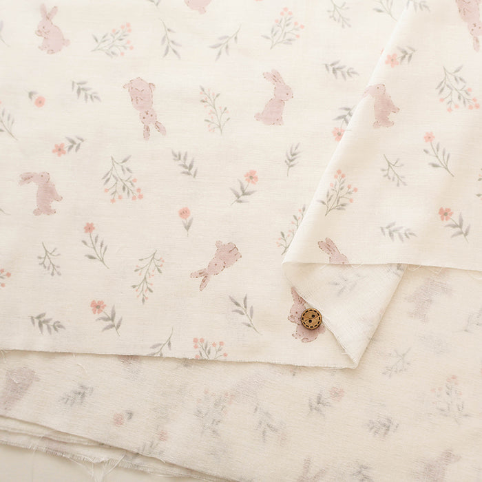 Cotton Double Gauze Print Fabric - Flower Rabbit