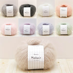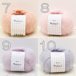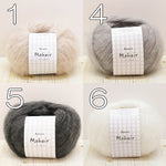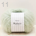 A medium-weight mohair yarn characterized by its natural luster and softness.
